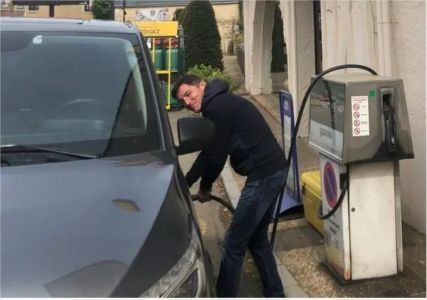 Le gérant fait le plein pour ses clients. Le Maine Libre