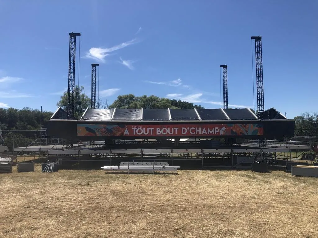 La grande scène du festival À Tout bout d’champ, mesurant 250 mètres carrés, est d’ores et déjà installée. © Ouest-France