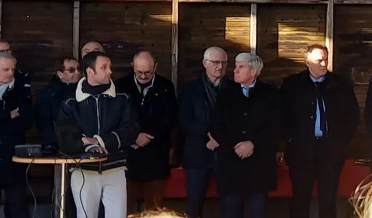 Avec les travaux de la salle communale en cours, c’est sous le préau de l’école que s’est déroulée la cérémonie. Sous un soleil radieux et par un froid certain, ce sont presque 150 personnes qui ont répondu présentes.