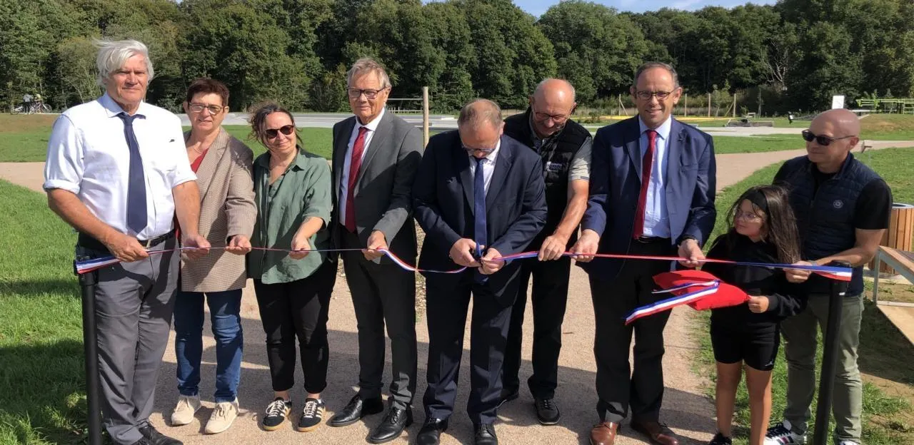 Implanté en lisière de forêt et mitoyen avec le terrain de football, cet espace constitue avec le city stade multisports un ensemble cohérent pour la pratique d’activités de loisirs à destination de toutes les générations : skatepark, parcours de santé, espace détente, tyrolienne, BMX, basket 3x3, araignée et rocher d’escalade, table de ping-pong. La qualité des prestations et l’harmonie des équipements dans un environnement naturel ont fait l’unanimité de l’ensemble des personnes présentes.