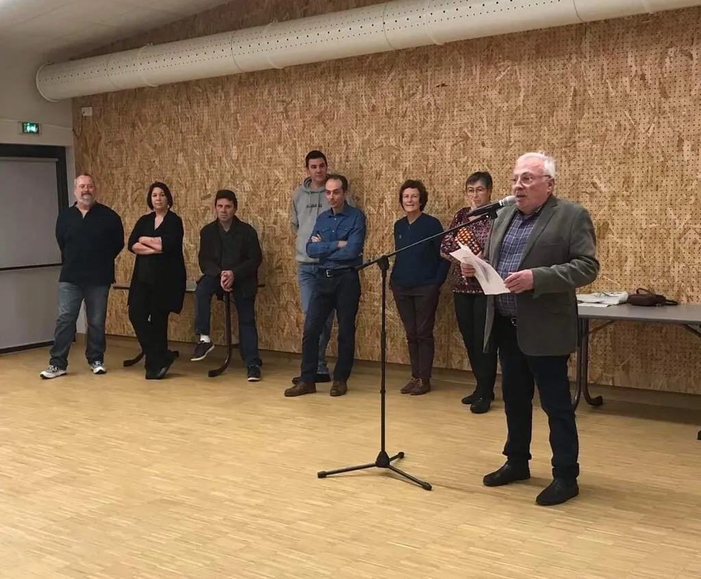 Jean-Paul Coquille en compagnie de son conseil municipal, lors de la cérémonie des vÅ“ux. © Ouest-France