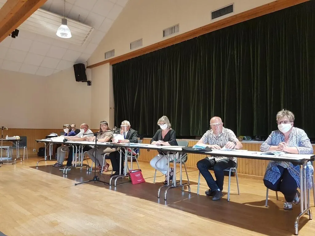 Les 27 conseillers municipaux ont pris place dans la salle Beauregard, où le scrutin s’est tenu pour assurer une distance de sécurité entre chaque personne. Autant de chaises étaient disposées à un mètre d’intervalle et tous les membres du conseil étaient protégés par un masque ou une visière.