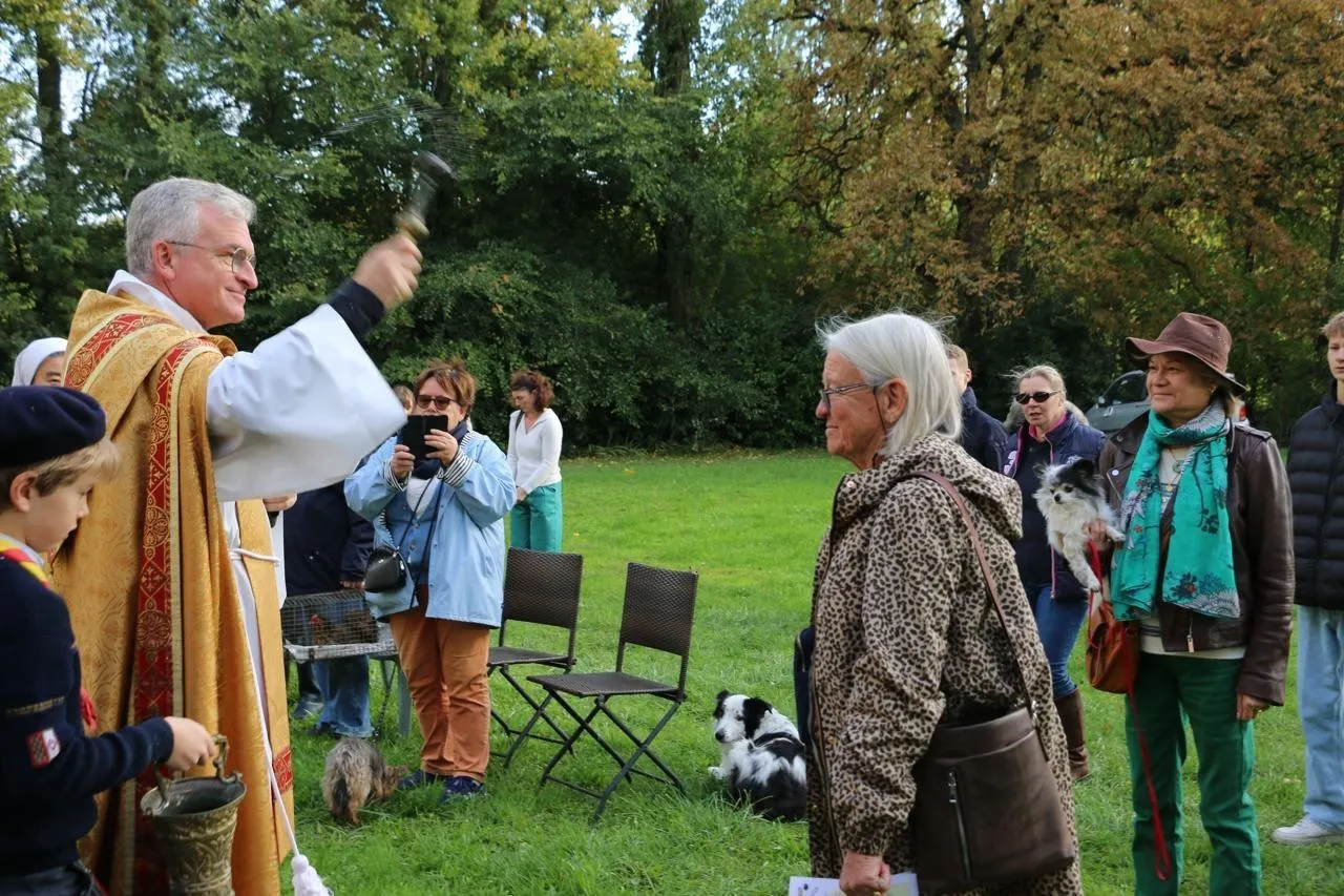 Pour la seconde année consécutive, le père Christian du Halgouët, curé de La Flèche (Sarthe), a organisé une bénédiction des animaux, ce samedi 4 octobre 2025, dans le jardin du presbytère de l’église Saint-Colombe. Une quarantaine de personnes ont fait le déplacement.