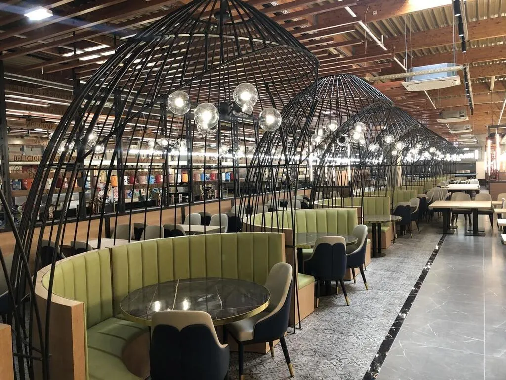 La décoration du restaurant mise sur l’éclairage, des assises et tables variées, et de nombreux espaces joliment compartimentés permettant un minimum d’intimité dans ce vaste endroit. © Le Maine Libre