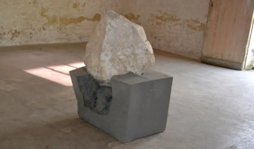 Cette brusque rencontre entre l’élément central de sa production et la roche a provoqué une fissure profonde, démontrant une fragilité inattendue de cet agglomérat. Parmi les références philosophiques évoquées, le performeur pointe du doigt son utilisation industrielle envahissante.  Cela fait vingt ans que je travaille avec et contre cette matière qui se reproduit et se détruit à l’infini, témoin de sa colonisation des villesÂ