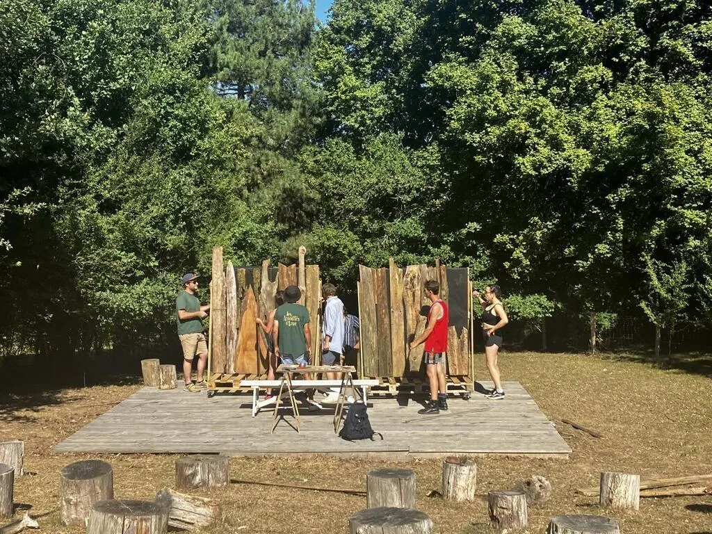 Les huit artistes de la compagnie Les Assoiffés d’Azur sont en résidence, depuis le 1er août 2022, à Clermont-Créans. Ils se préparent pour la quatrième édition de leur festival de théâtre. © Ouest-France