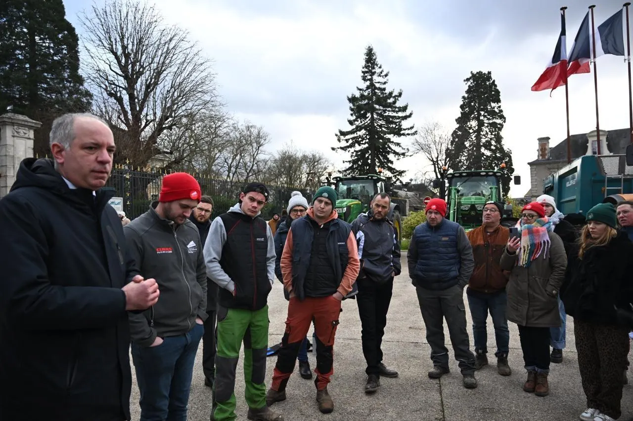 Au Mans, les agriculteurs ont répondu à l’appel de la FDSEA et des JA et se sont réunis, avant midi, devant la préfecture de la Sarthe. Le préfet est allé à leur rencontre. © Le Maine Libre - Denis LAMBERT