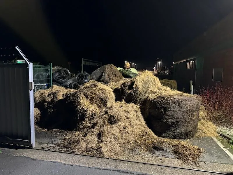 Situation similaire à Ecommoy, où la direction de l’Hyper U a découvert, ce mercredi matin, un amoncellement de pneus, de bottes de paille et de fumier, déposé devant l’entrée du magasin.