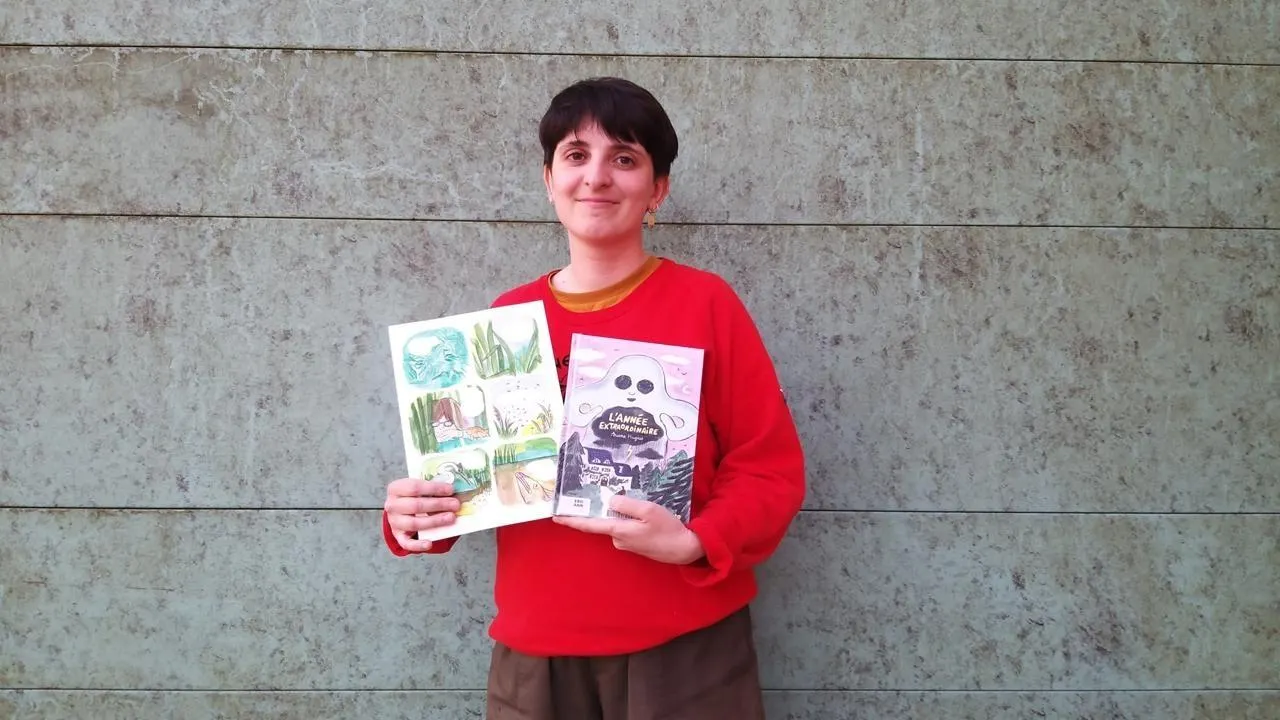 Ariane Hugues, autrice en résidence, avec sa bande dessinée, L’année extraordinaire, paru en 2023. © Ouest-France