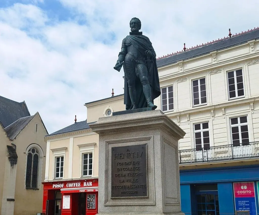 Au cœur du centre-ville de La Flèche (Sarthe), une fière statue rappelle l’importance du roi Henri IV pour la cité. Une histoire aujourd’hui méconnue qui remonte à 170 ans et qui changea le cœur de la ville.