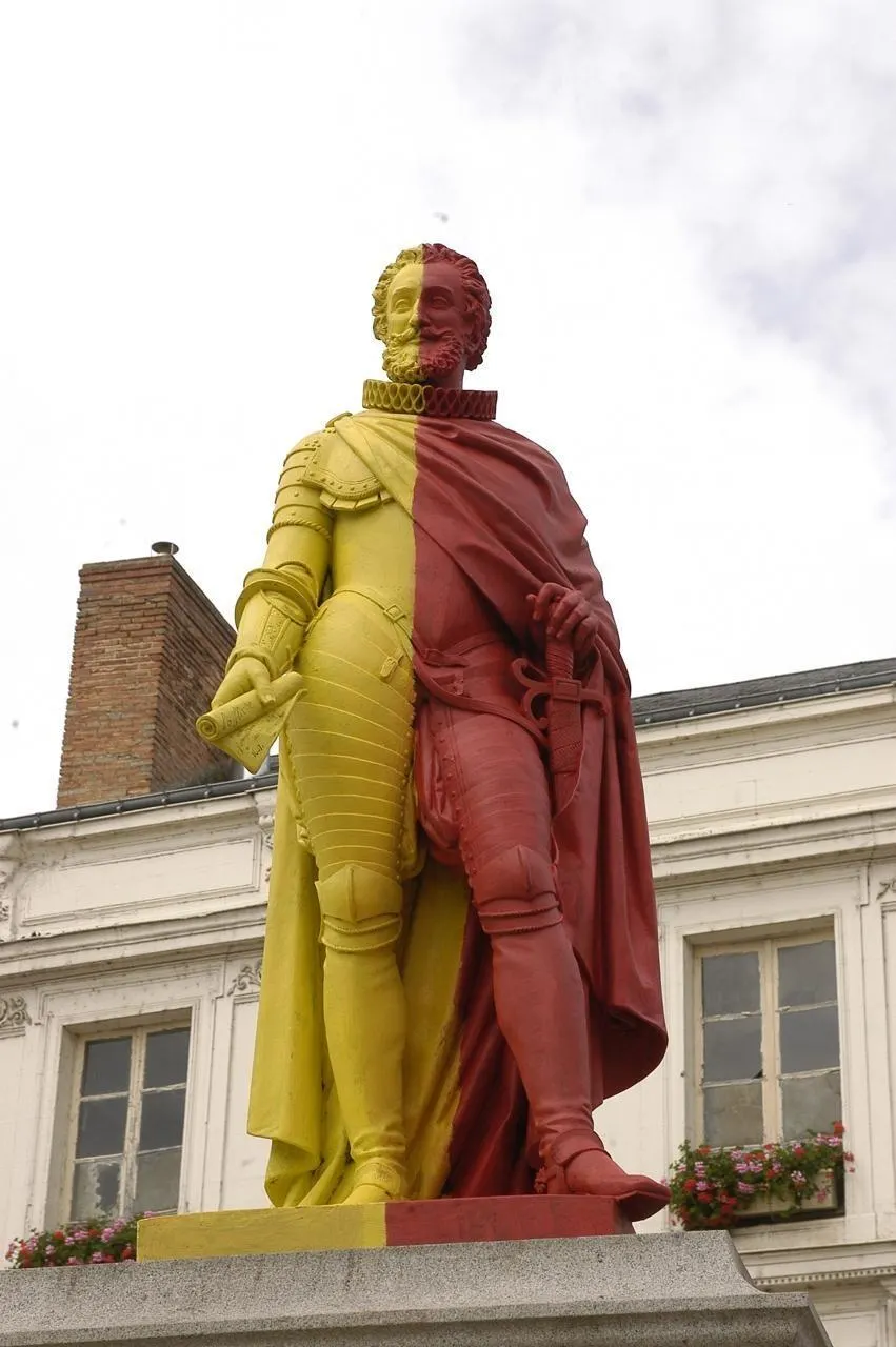 Culminant à près de 5 mètres, la statue du roi Henri IV domine depuis le 28 juin 1857 la ville qui lui doit tant, au gré des transformations de la place qui porte son nom. © Ouest-France