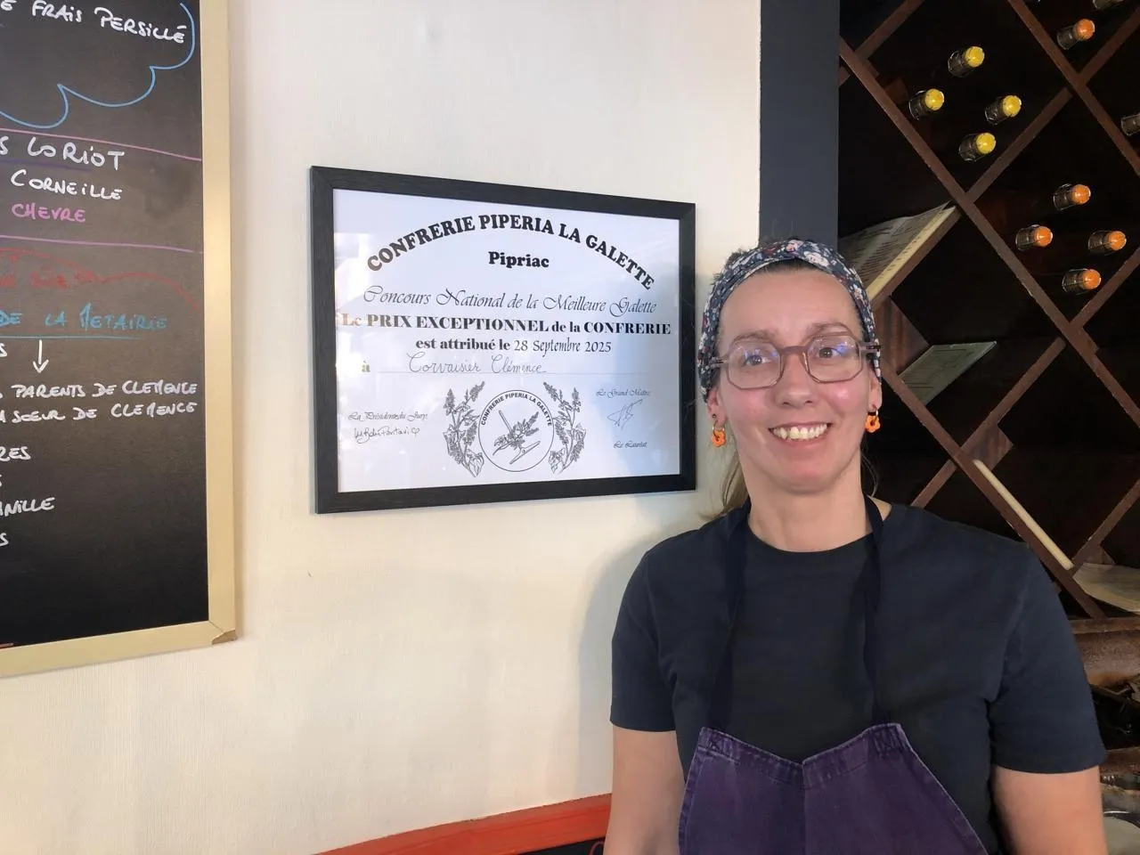 Clémence Corvaisier, installée depuis 2020 dans sa crêperie Chez Clémence au Mans (Sarthe), a remporté le prix exceptionnel de la meilleure galette de France de la Confrérie Piperia la Galette à Pipriac (Ille-et-Vilaine), fin septembre 2025.