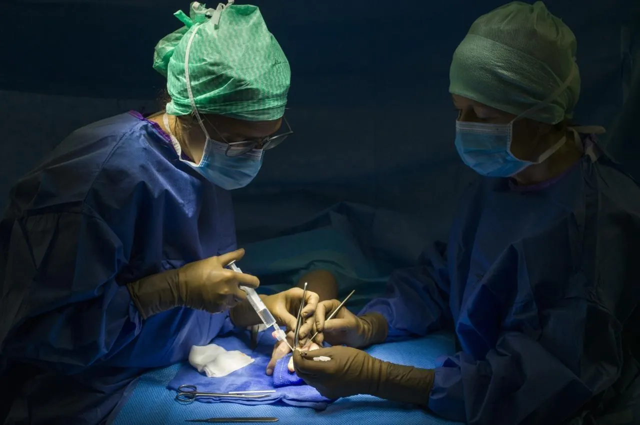 Au bloc opératoire, le docteur Caroline Delaroche prend en charge une femme mordue à la main. L’intervention consistera à inciser le doigt blessé et à nettoyer l’intérieur. © Le Maine Libre Denis LAMBERT