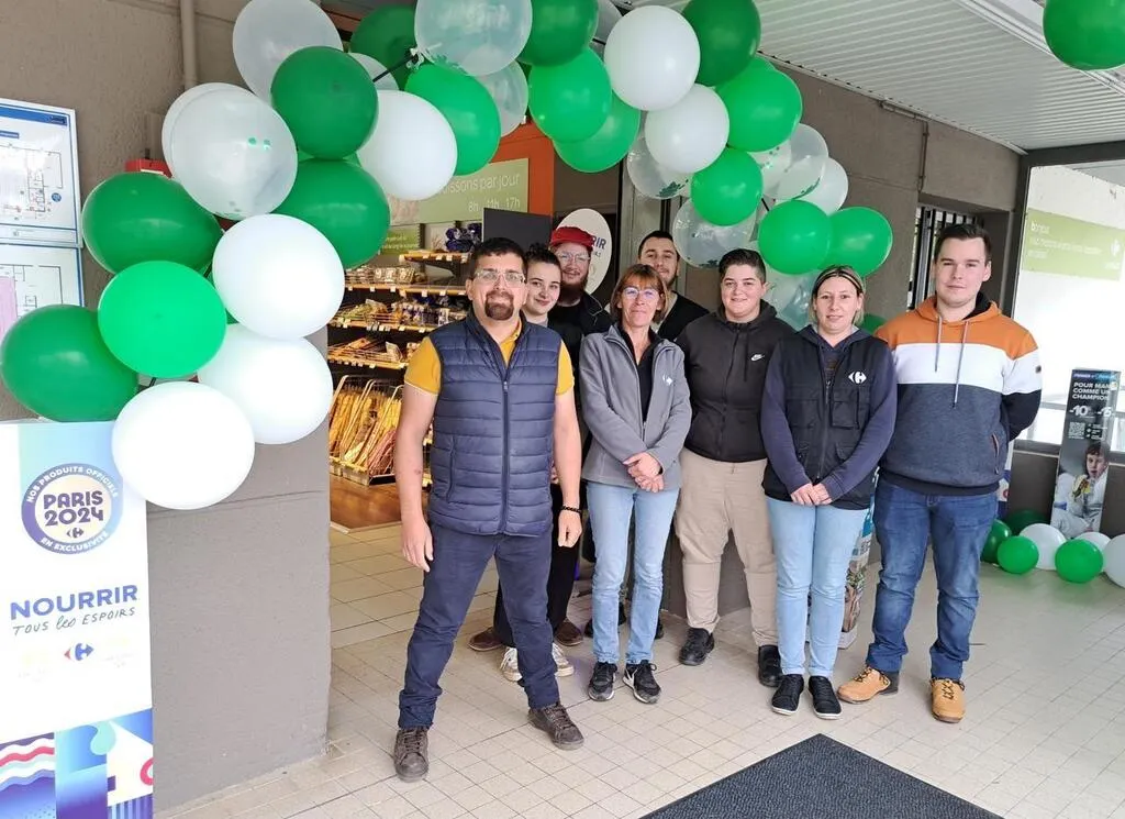 L’équipe du magasin avec de gauche à droite : Cédric, Ilona, Stéphane, Murielle, Enzo, Ambre, Audrey et Valentin. © Magasin Carrefour contact