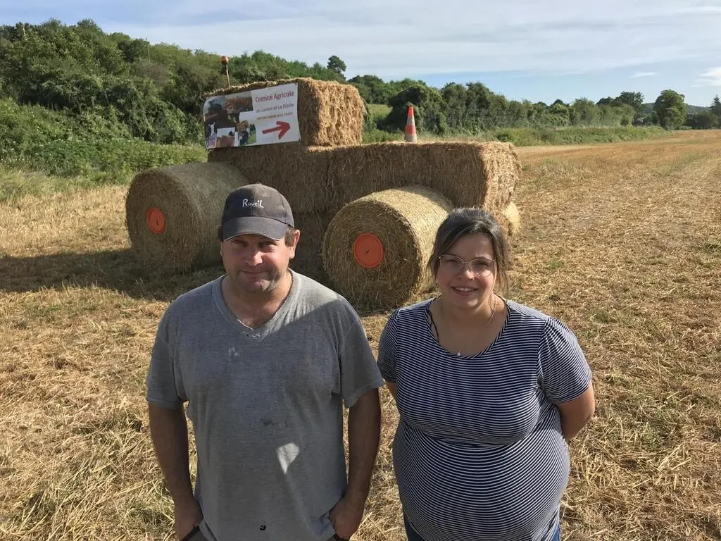 Stanislas Davoine, éleveur, et Laura Manceau, femme d’agriculteur, deux des trois coprésidents du comice agricole de Mareil-sur-Loir du 23 au 25 août 2024. © Le Maine Libre