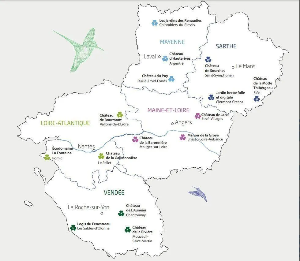 Maine-et-Loire. Vendredi 17 juin : Jardins du manoir de La Groye, Brissac-Loire-Aubance ; samedi 18 juin : Parc et jardin du château de Jarzé, Jarzé-Villages ; dimanche 19 juin : Parc et jardins du château de La Baronnière, Mauges-sur-Loire.