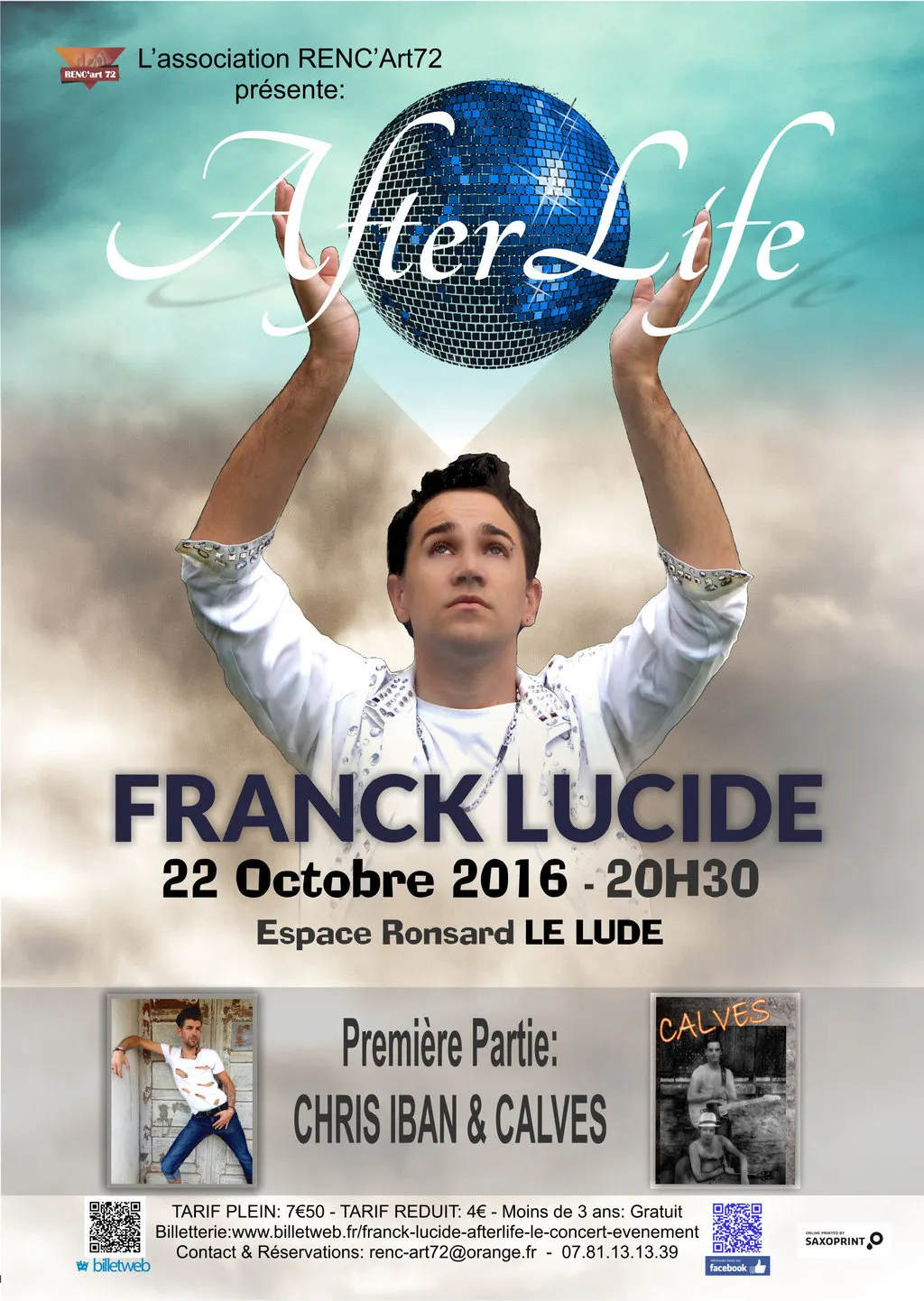 L'association RENC'Art72 organise le 22 Octobre 2016 – 20H30 à l'Espace Ronsard un grand concert promotionnel à l'occasion de la sortie du 3ème album de Franck LUCIDE: «AfterLife»