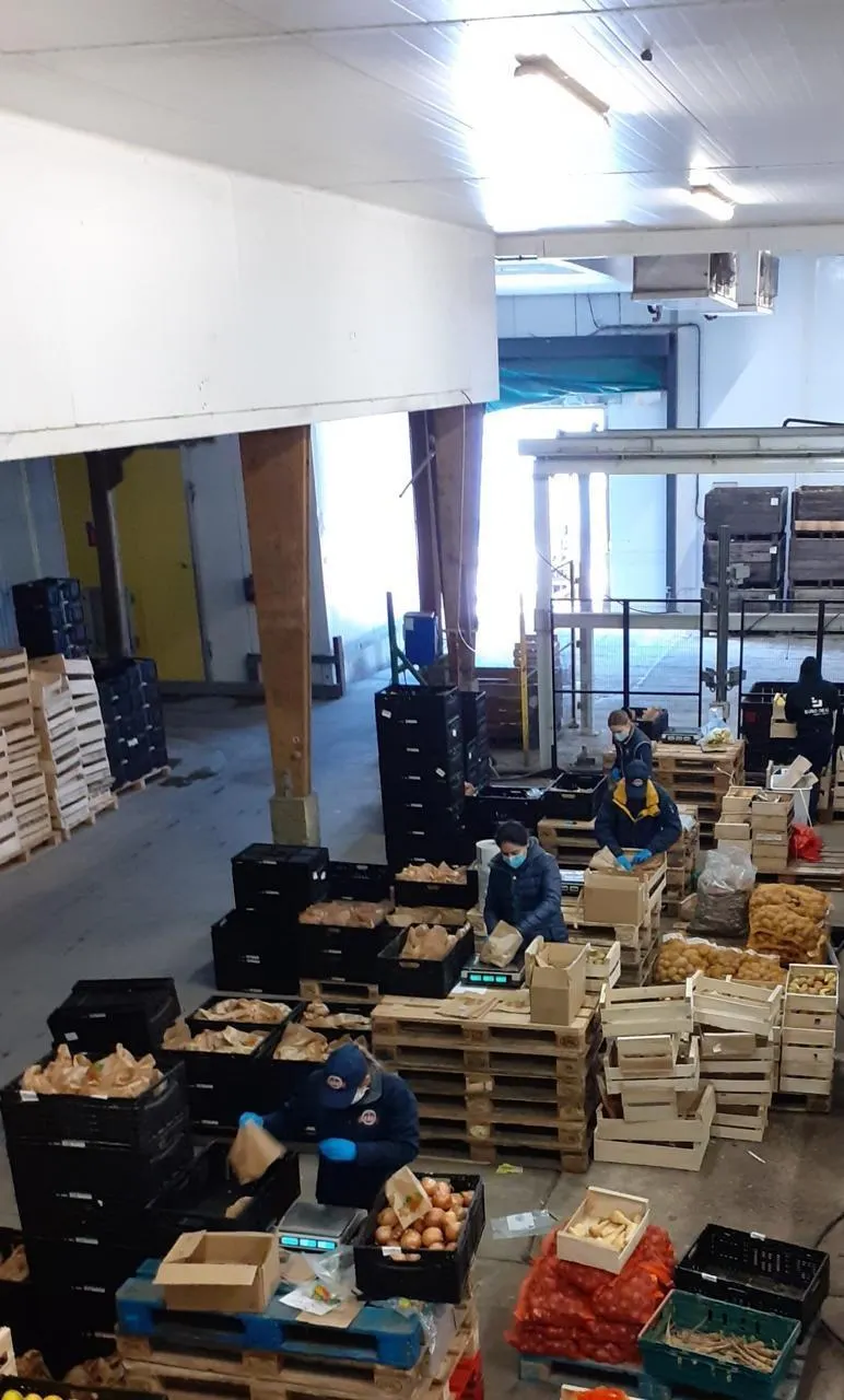 Des employés de la station de fruits et légumes préparent les commandes en respectant les mesures barrières du virus obligeant une réorganisation. © Le Maine Libre