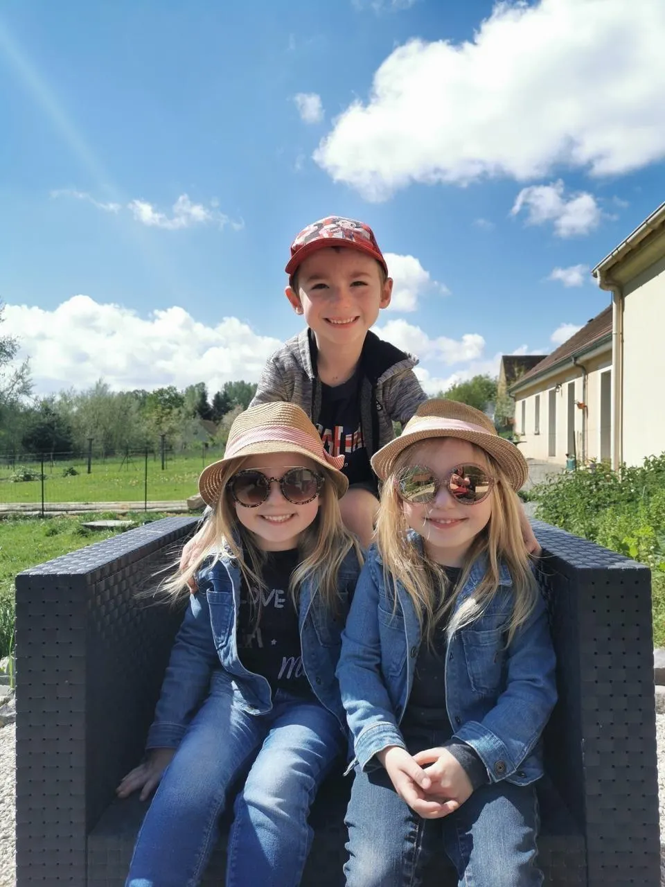 Le message de Momo, Celia et Lolo : « Un gros bisou à papy et mamie de Saint-Michel-de-Chavaignes. On pense fort à vous, on vous aime ».