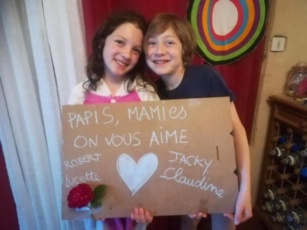 « Papis, mamies on pense très fort à vous, on arrive à toute vitesse dès qu’on pourra sortir ! On vous aime », lancent Marilou et Hugo. Et avec un peu de retard (c’était le 20 avril mais le message a été envoyé avant) : « Joyeux anniversaire papi Jacky !!! »
