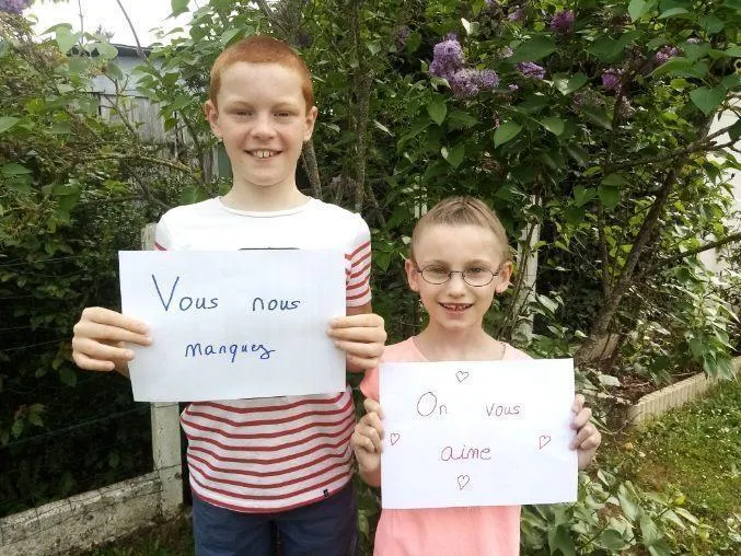 De la part d’Enzo et de Léna, pour une petite surprise à leurs grands-parents : « Coucou Mamou ChriChri et Papou JeanWi. Cette surprise pour vous dire que vous nous manquez énormément et qu’on vous aime très fort. Gros gros gros bisous. »