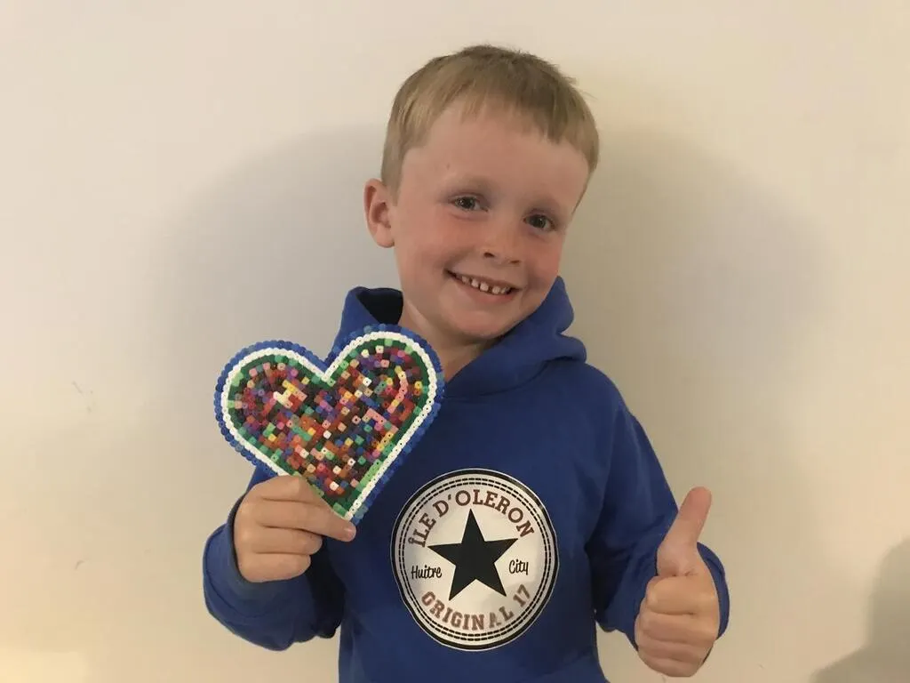 Nolhan envoie un petit cœur : « Papy, mamie, voici un petit cœur que je vous envoie avec plein de gros bisous. Je vous aime ».