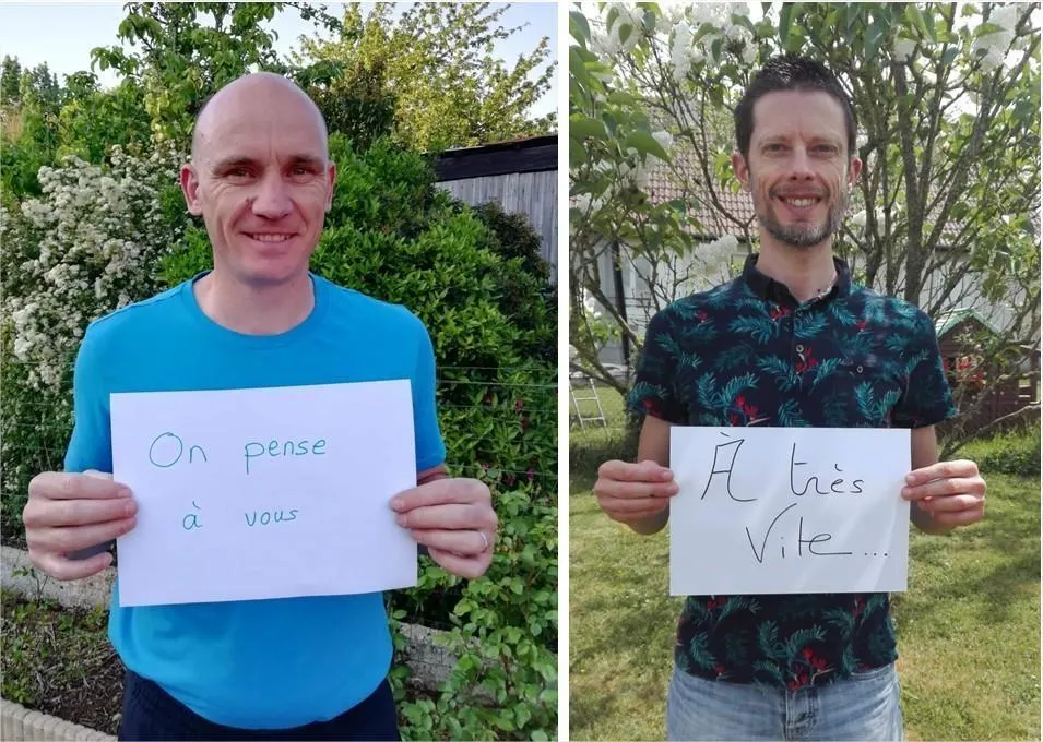 Le message surprise de Yannick et Greg : Mémé Chrichri et Pépé Jeanwi, nous vous envoyons un petit message surprise pour vous dire qu’on pense bien à vous ! À très bientôt. Grosses bises