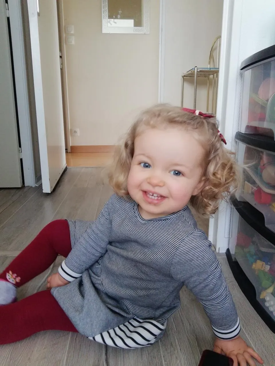 La petite Emma écrit à sa Mamie Eliane, son Papy Raymond et son Papy Jacques. Vous me manquez beaucoup. Depuis deux mois, j’ai appris beaucoup de choses (surtout des bêtises). Je vais bientôt marcher toute seule alors j’ai hâte de vous revoir. Je vous aime très fort. Bisous Bisous Bisous ».