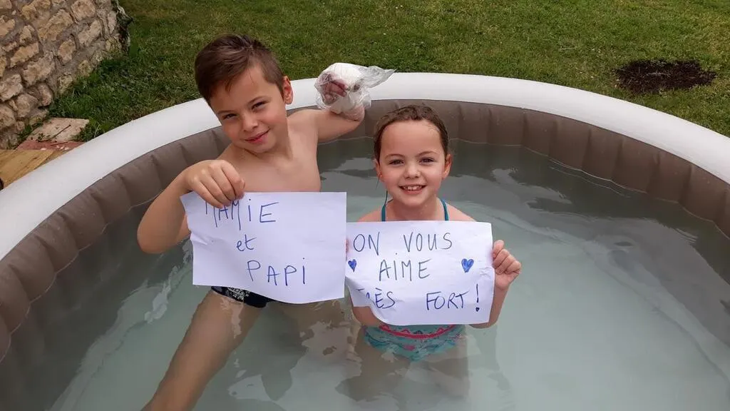 Justine et Antoine ont envie de retrouver leurs grands-parents. « Mamie Nicole, papy Serge, mamie Francine, papy Daniel, nous avons hâte de vous retrouver pour partager de bons moments en famille. Profitez du jardin et du soleil, et surtout prenez soin de vous. En attendant de vous revoir, nous vous embrassons très fort ».