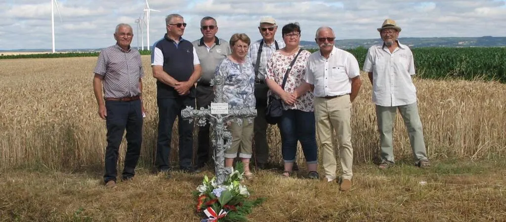 Pour inaugurer cette nouvelle croix en fer offerte par Gaston Drouin de Neuvillalais, Emmanuel Foucault avait convié Christian Lemasson, maire de Conlie, Sylvie Boullier, maire de Crissé où résidaient les parents du jeune et la famille Lebreton propriétaire du champ qui a accepté l’implantation de la croix.
