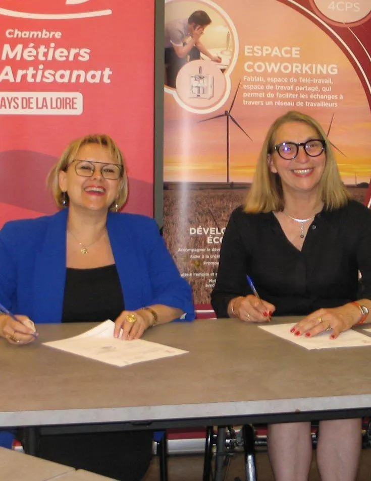 Fabienne Malhaire Boulanger, présidente de la Chambre des Métiers et de l’Artisanat et Valérie Radou, présidente de la 4CPS, viennent de signer une convention de partenariat pour cette année.