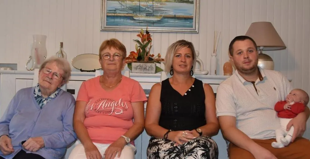 Bernadette est née dans la région en 1940. Elle se marie et donne naissance à deux enfants dont Ghislaine : « A mon tour, j’ai deux enfants dont Delphine qui, à son tour, a donné naissance à deux enfants dont Sullivan 24 ans qui vient d’avoir la petite Adèle âgée d’un mois et demi ».