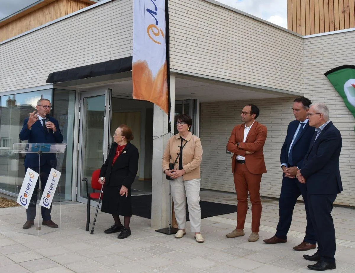 Lors de l’inauguration de la nouvelle salle du Quai des sports de Connerré, des élus ont coupé le ruban tricolore et dévoilé la plaque au nom de Suzanne Jalinier.