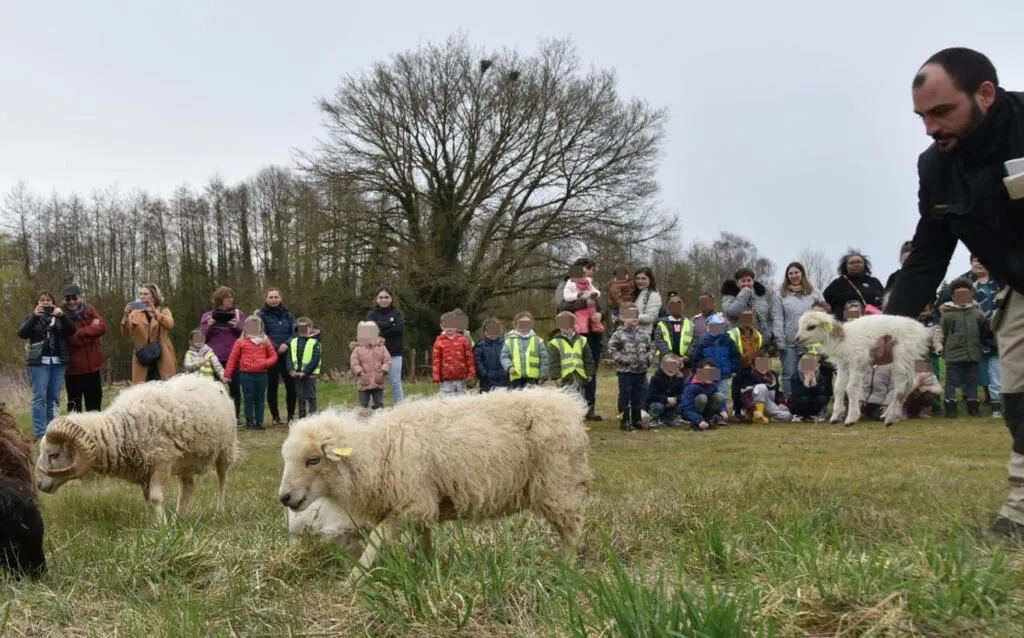 Les moutons ont été accueillis par élus, enfants, enseignantes et personnel communal. © Le Maine Libre