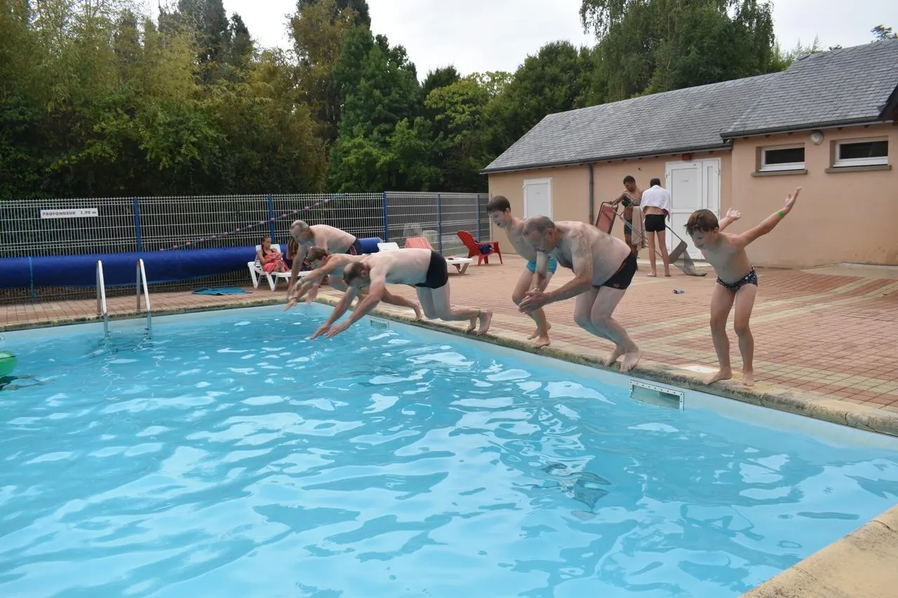 À Tennie (Sarthe), la piscine municipale du camping a toujours autant de succès. Le maire est venu en famille se jeter à l’eau.