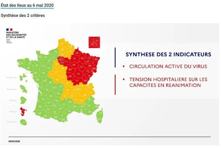 C’est la synthèse de ces deux critères qui permet d’établir la carte provisoire en vue du déconfinement le lundi 11 mai, la version définitive étant attendue pour ce jeudi 7 mai, avec seulement deux couleurs, le vert et le rouge.