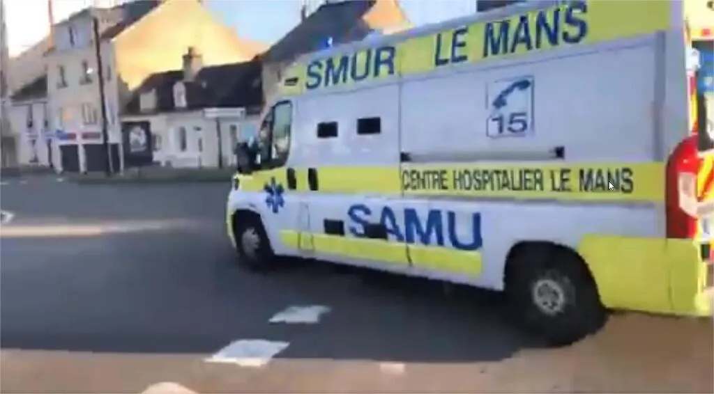 Le convoi de quatre ambulances est arrivé à 17h50 au centre hospitalier du Mans, escorté par des motos de la gendarmerie, tandis que les policiers sécurisaient les lieux.