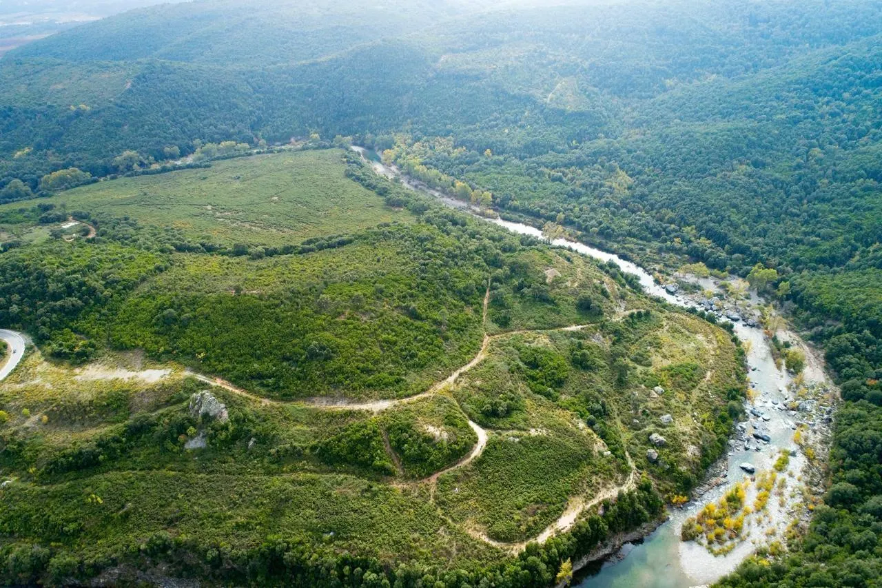 La rivière Tavignano et le site prévu pour l’installation de traitement des déchets, à Giuncaggio, sur l’île de Corse. © PASCAL POCHARD-CASABIANCA / AFP