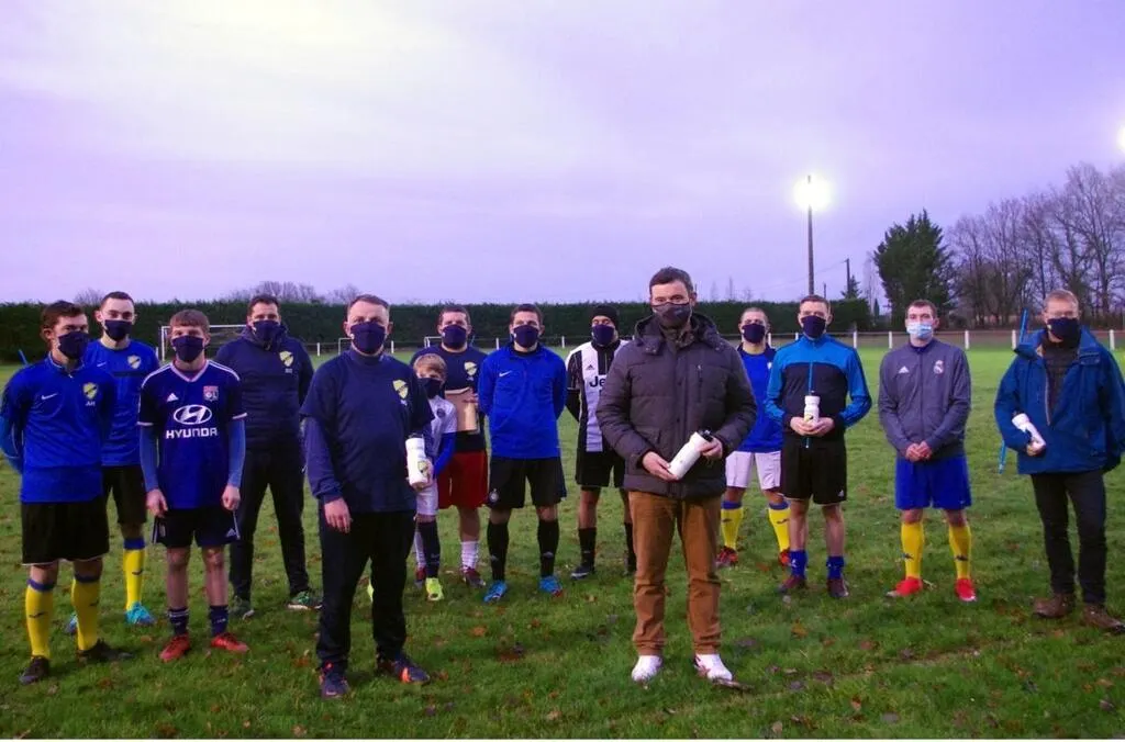 Alors que les entraînements et matchs n’avaient en effet pu se tenir depuis le début du mois de novembre, les responsables du club de l’ESC ont reçu une surprise, destinée aux joueurs venus nombreux, probablement impatients de retrouver les terrains : « Nous avons reçu des gourdes individuelles pour chaque joueur, explique le président Noël Guilmin. C’est un de nos sponsors qui a financé cette opération qui vient compléter les mesures sanitaires prises par le club, comme la distanciation ou la fermeture des vestiaires. »