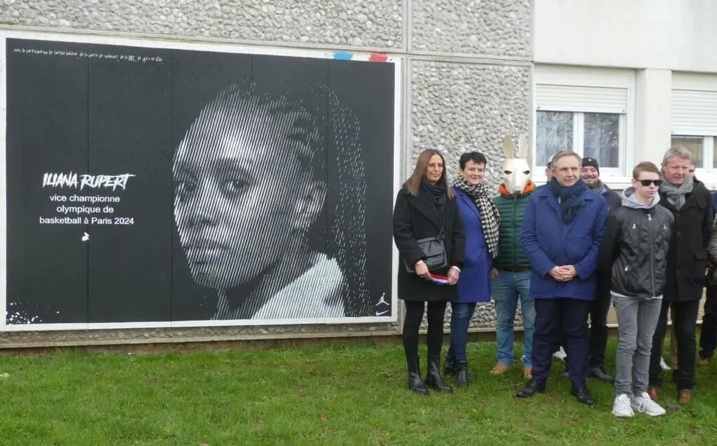 Mardi après-midi, une vingtaine de personnes ont inauguré la fresque d’Iliana Rupert, vice-championne olympique de basketball à Paris 2024, avec sa mère Elham. Ce portrait a été réalisé fin novembre par le street-artiste Lapin Blanc et deux jeunes, Amira et Illario, encadrés par les éducateurs d’Inalta, à la demande de Sarthe Habitat et de la mairie.