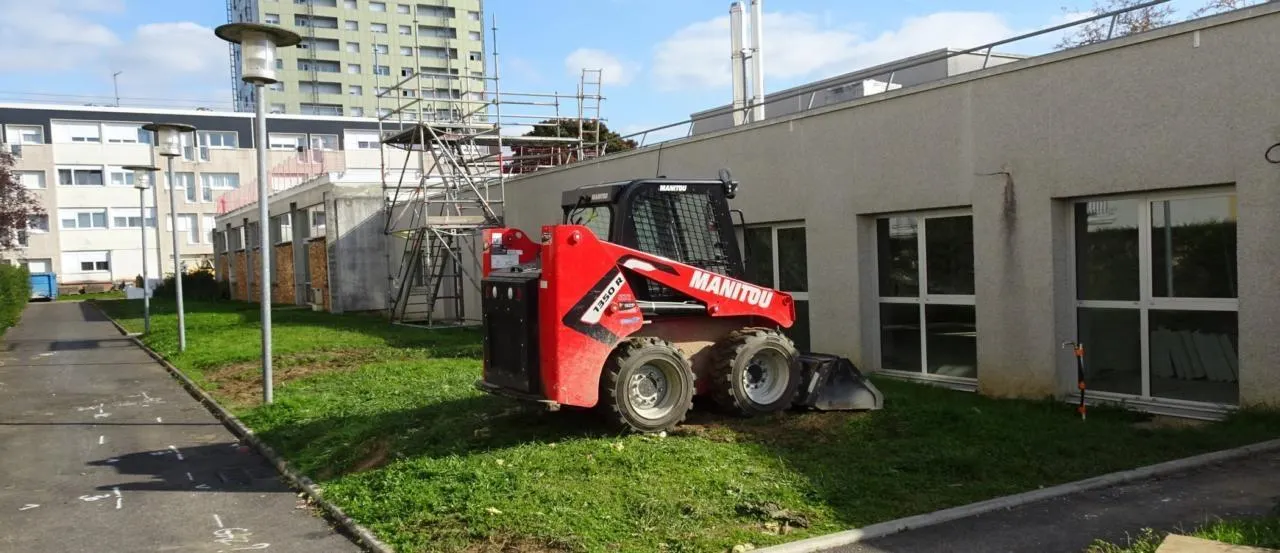Depuis septembre, les travaux de rénovation énergétique du site de l’Herberie ont commencé. À droite, les locaux de la future maison d’assistantes maternelles. © Ouest-France