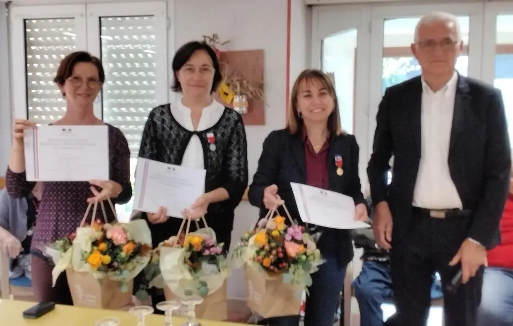 À travers ces médailles, Élisabeth Guillot, Brigitte Suard, Muriel Lelong et Valérie Heurtebise étaient récompensées pour l’ancienneté de services et la qualité des initiatives prises dans le travail.