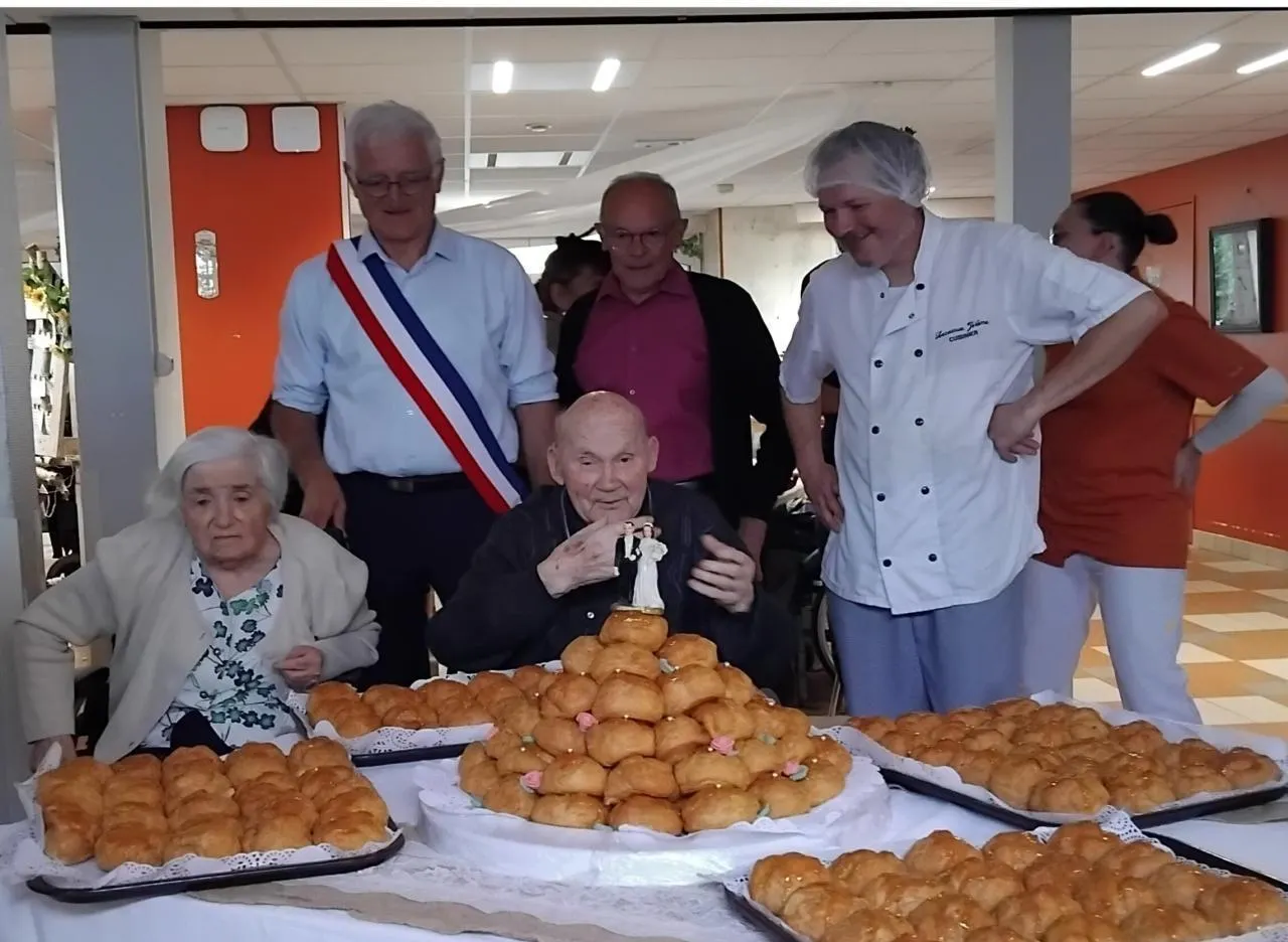 Un couple de résidents a renouvelé ses vÅ“ux avec une pièce montée réalisée par les chefs cuisiniers de l’Ehpad de La Chanterie © Le Maine Libre.