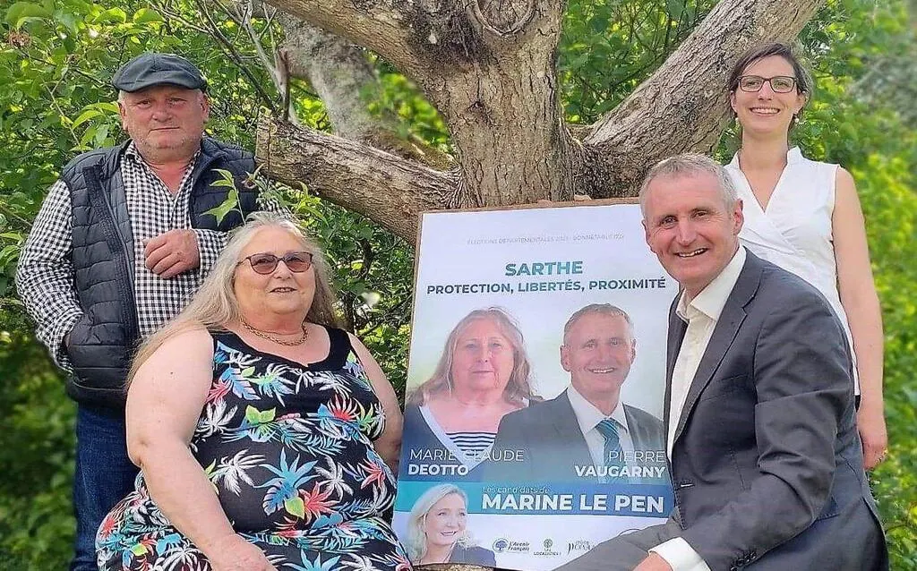 Pierre Vaugarny, 52 ans, agriculteur bio depuis 1998, conseiller municipal en charge de la vie associative à Courcebœufs, a été responsable professionnel agricole et secrétaire national des producteurs de viande bovine jusqu’en 2018. Il a à ses côtés Marie-Claude Deotto, habitant Ballon-Saint-Mars, retraitée de la fonction publique. Ils auront comme remplaçants Claire Le Morvan de Neuville-sur-Sarthe, institutrice et maman de trois enfants, et Daniel Rebrassé de Bonnétable, ouvrier. Ensemble ils formeront le binôme du Rassemblement National.