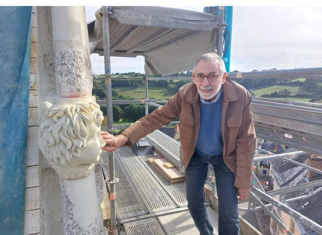 Un artisan spécialiste des travaux menés sur les églises, au chevet de Notre-Dame à Courdemanche. © Le Maine Libre