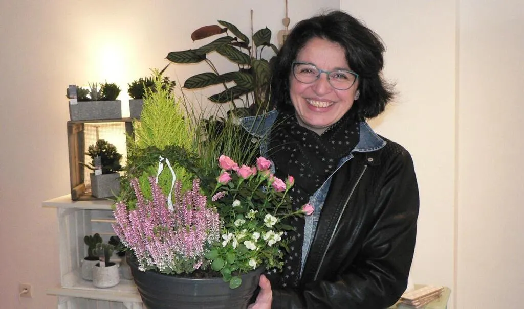 Pour égayer les tombes, Sandrine propose des compositions alliant plantes fleuries et vertes. © Ouest-France