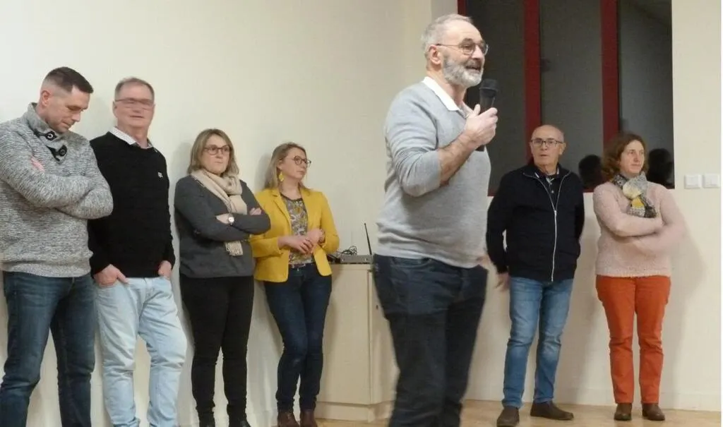 Thierry Renvoizé, maire, est accompagné du conseil municipal pour présenter les vÅ“ux à la population. © Ouest-France.