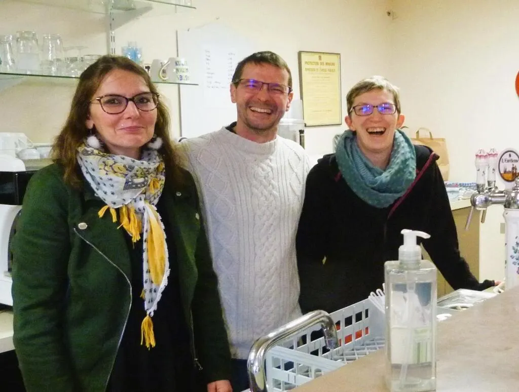 Mickaël Locteau, président du comité des fêtes, entouré des bénévoles au comptoir du restaurant pour servir café et bonne humeur. © Ouest-France