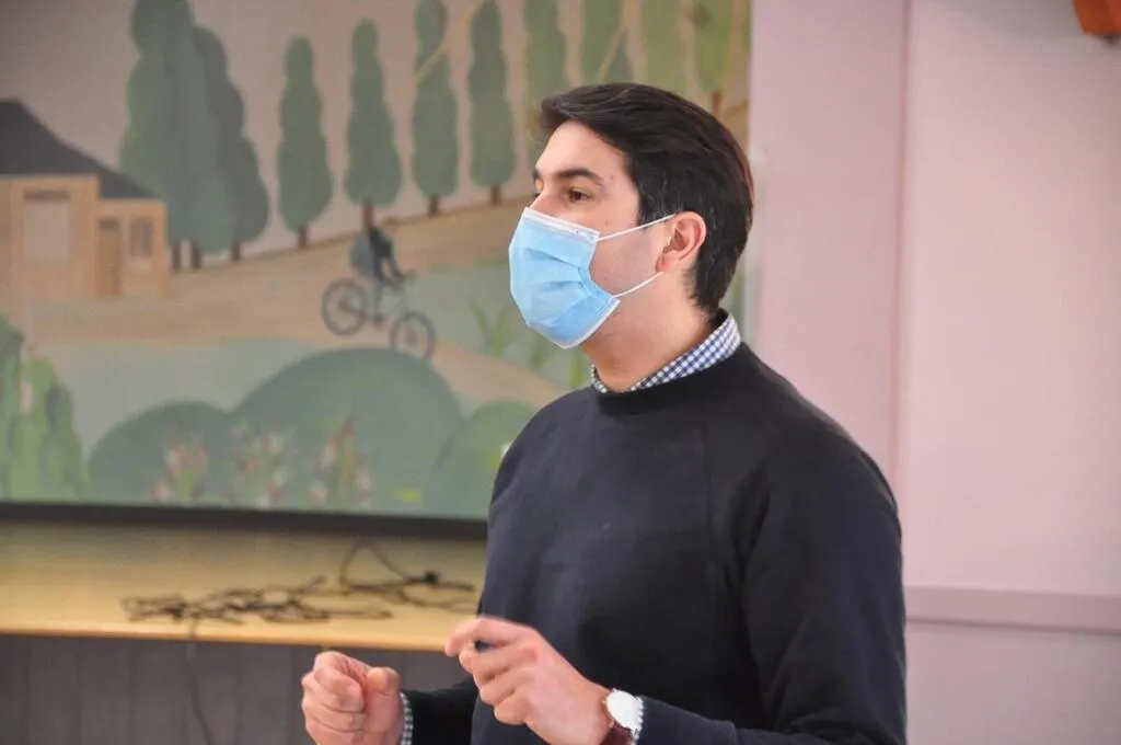 Le Dr Karim Saïdi (à droite), présente l’organisation et le fonctionnement du centre de vaccination qui doit ouvrir jeudi 21 janvier. © Le Maine Libre