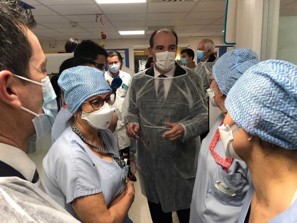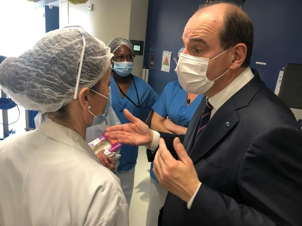 Le Premier ministre Jean Castex a discuté avec les soignants du service de réanimation du centre hospitalier du Mans, ce samedi 18 décembre 2021. Ouest-France